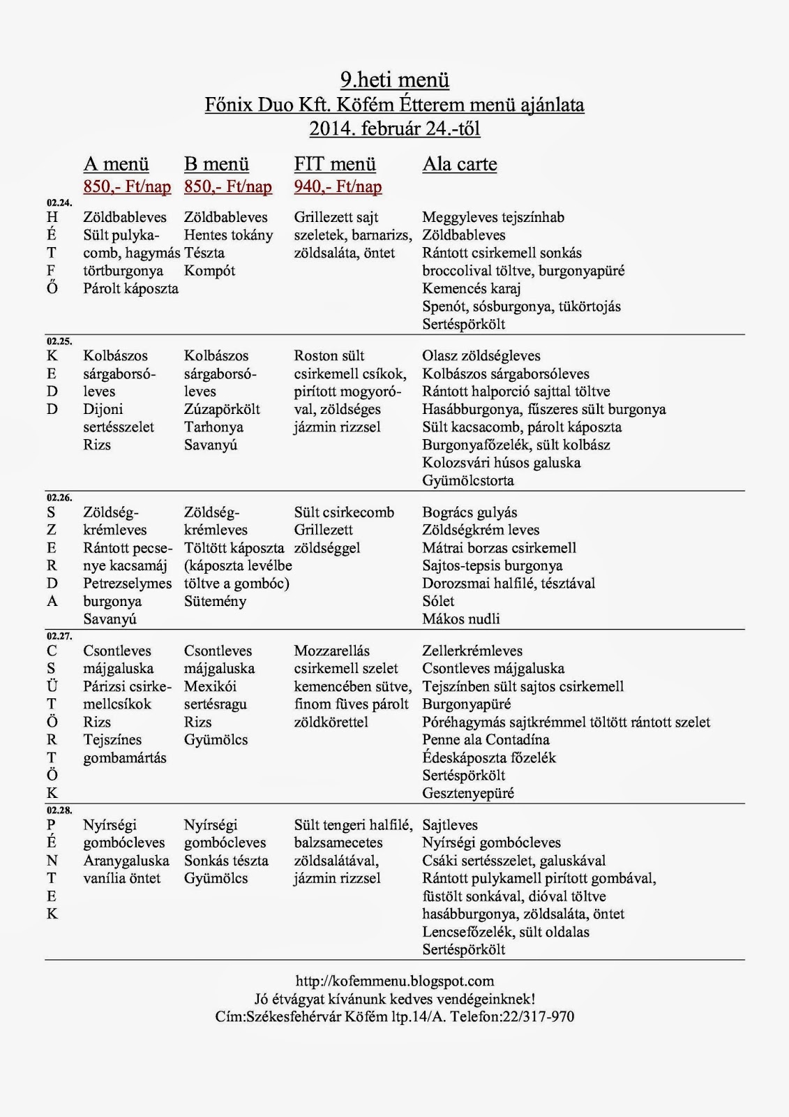 Étlapok Székesfehérvár éttermeiből, étkezdéiből, kifőzdéiből...